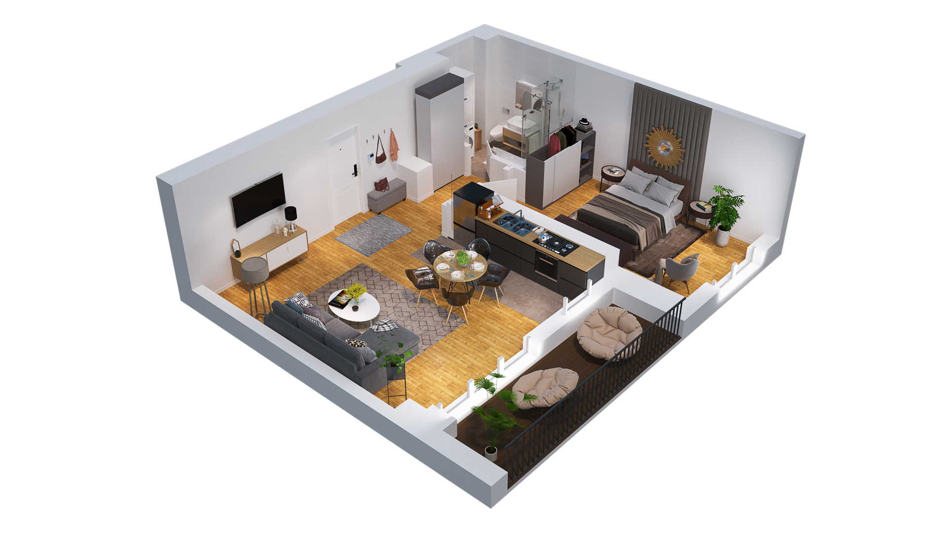 Ce îți spune sintagma familie tânără? Dar cuplu modern? Ei bine, apartamentele noastre de 3 camere sunt special create pentru familiile care își doresc un cămin unde viața de familie începe. Design modern, spații de depozitare, compartimentare eficientă, spațiu generos, spațiu creat special gândindu-ne la stilul tău de viață activ, ce vine în ton cu peronalitatea ta.